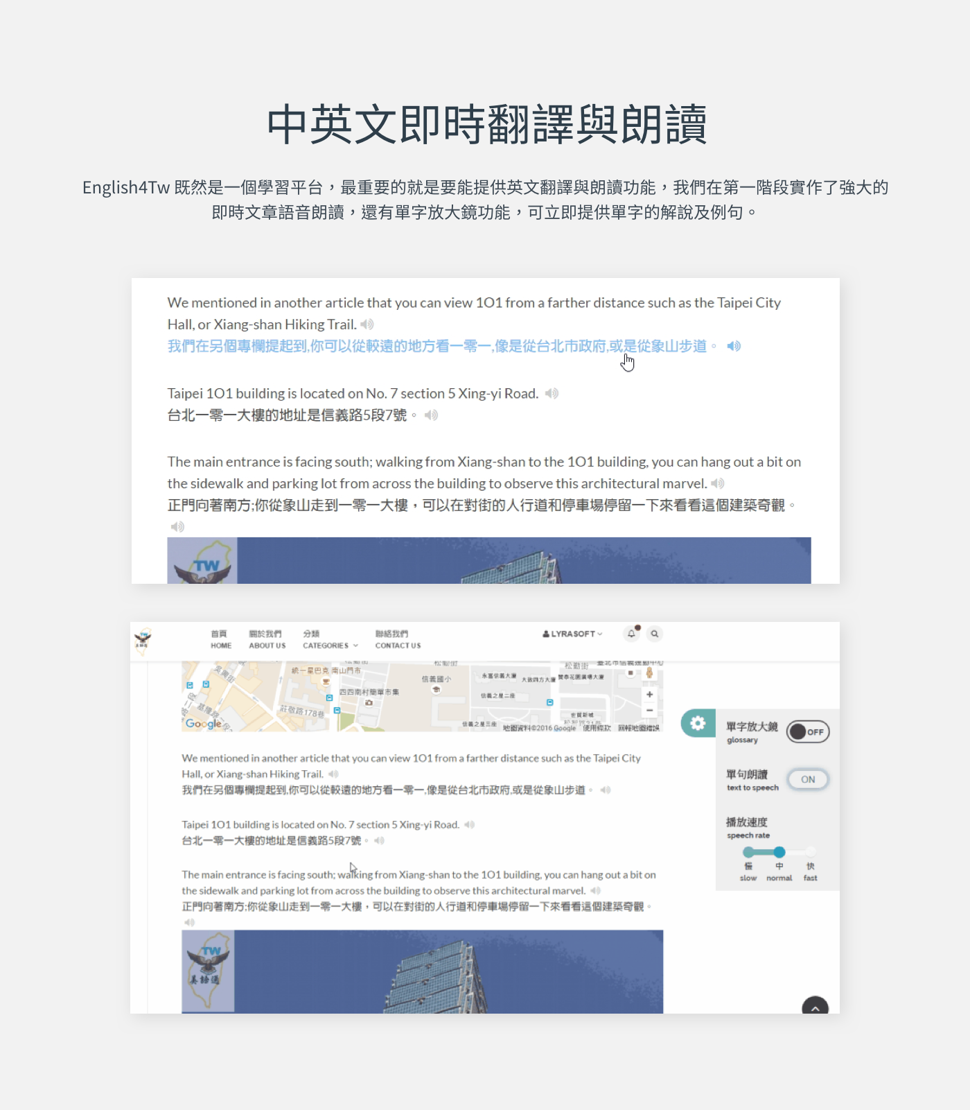 文章編輯頁面同時含有 Google Map 插入功能,我們可以從介面上即時的搜尋地圖,並取得經緯度資訊,只要按下插入鈕,就能立即將 Google Map 地圖插入在文章中給讀者預覽