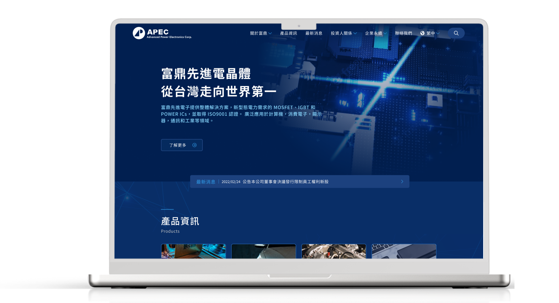 富鼎先進電子提供整體解決方案,新的電力需求的MOSFET、IGBT和POWER ICs並取得ISO9001認證。 富鼎先進的產品已廣泛應用於計算機,消費電子,顯示器,通訊和工業等領域。