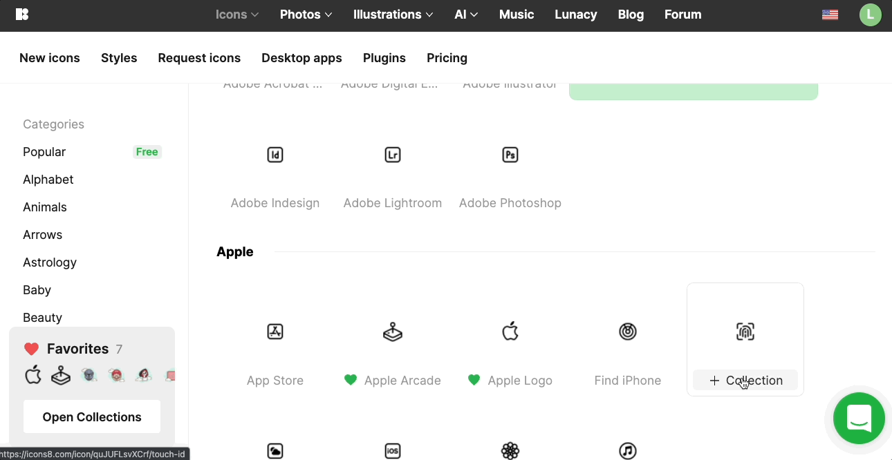 想要比較icons的話可以按喜歡,左下角有收藏盒,可以把喜歡的icon一次下載,或一整包同系列icon一起下載,讓你的畫面icon更有連續性。