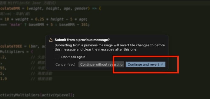 這樣 Cursor 會把整個寫錯的程式碼清除,重寫一遍。